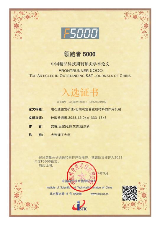 据悉,“领跑者5000-中国精品科技期刊顶尖学术论文(简称F5000)平台”是科技部为促进中文科技期刊进入国际重要检索系统,将中国顶尖研究成果推向国际学术界而设立的奖项。每年在300余种中国精品科技期刊中遴选,入选论文必须来源于精品科技期刊且位于各学科前1%的高被引论文,同时通过专家评议推荐为原创性的科学研究或技术创新成果。F5000入选论文代表了我国不同研究领域最优秀的研究成果,在国内具有极高的学术影响力。