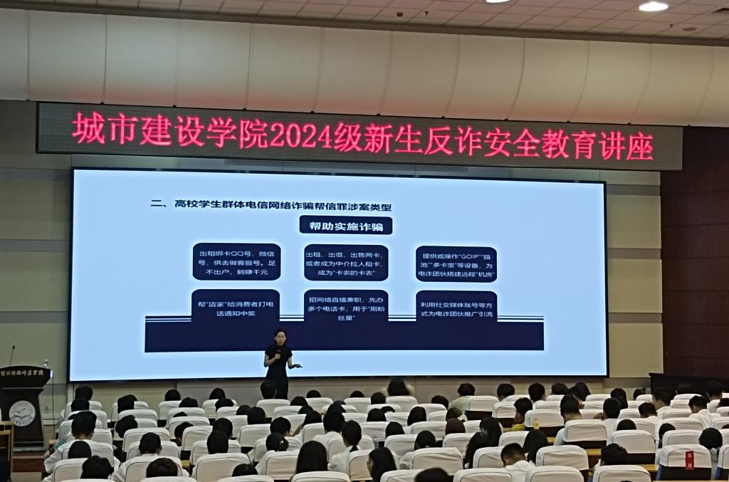 为了提升大学生电信网络诈骗防范能力,9月5日,澳门十大网投平台排行在学术报告厅面向2024级全体新生,举行了一场 以“提高电信反诈意识,共建科师无诈校园”为主题的安全教育讲座。旨在通过教育引导,增强学生识别和防范电信网络诈骗的能力,构建和谐、安全、无诈的校园环境。