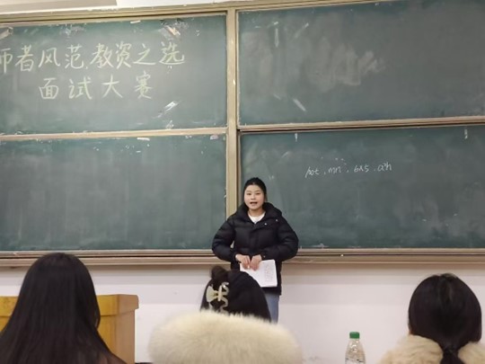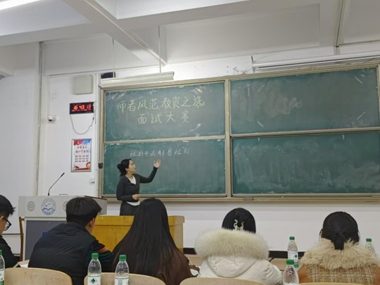 活动通过模拟面试的形式,让同学们提前感受教资面试氛围,了解教资面试流程和要求。比赛前,同学们相互学习、相互交流;比赛时,同学们侃侃而谈自己对教学问题的见解。评委通过考察参赛学生对教育理解和思考评选出一、二、三等奖。李劲欣荣获一等奖,郭佳兴荣获二等奖,李明丽荣获三等奖。